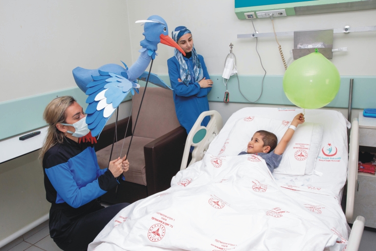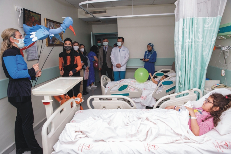 Sağlık Bilimleri Üniversitesi Yüksek İhtisas Eğitim ve Araştırma Hastanesi Çocuk Cerrahisi ve Enfeksiyon Servisi’nde yatan ve ameliyat için bekleyen çocuklar, Büyükşehir Belediyesi Şehir Tiyatrosu’nun sürprizi ile karşılaştı. Belirli periyotlarla hastanelerde hasta çocuklara yönelik oyunlar sahneleyen tiyatrocular, bu kez çocukları hasta yataklarında ziyaret etti. Tiyatrocular İpek Zeylan ve Yüksel Hakverdi özellikle çocukların çok sevdiği ‘Kırmızı Duvar’ adlı oyunda kullandıkları mavi kuş ve tilki kuklaları ile oyundan bölümleri canlandırdılar.
