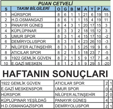 Hürspor 7.ci hafta maçına 16 puanla averaj ile takipçisi Panayır Güneşspor önünde lider , rakibi Nilüfer Altınşehir Gençlikspor ise 9 puanla 5.sırada çıktı.