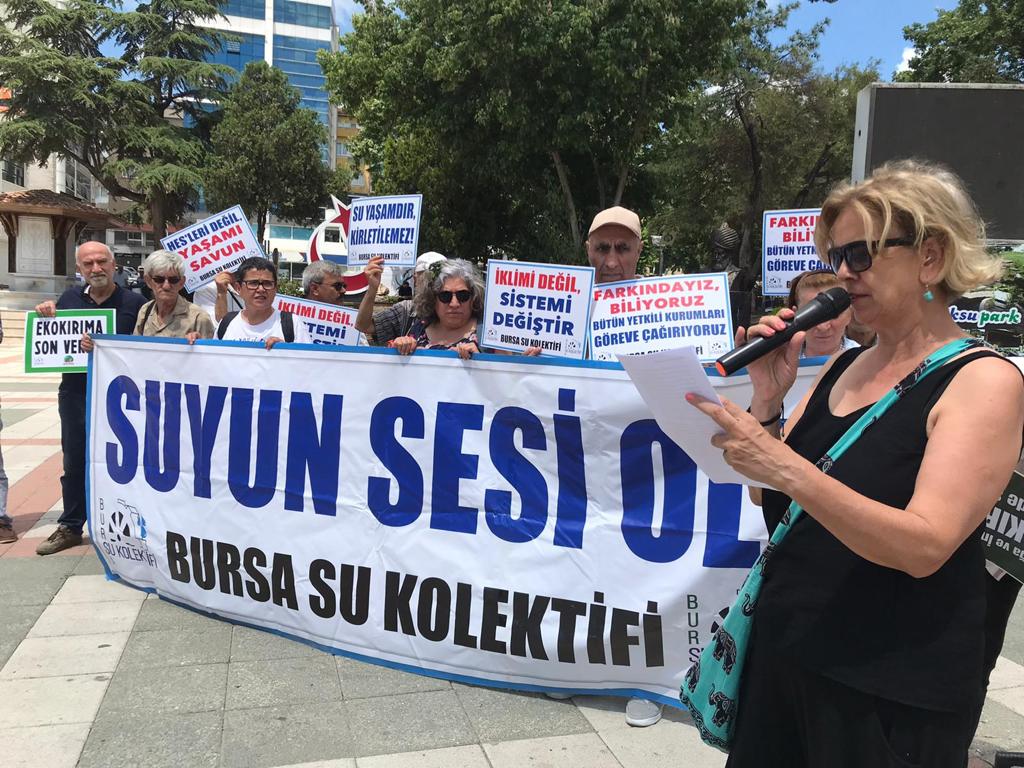 Gölün çevresindeki fabrikaların önündeki eylemden sonra Orhangazi’de basın açıklaması yapan Bursa Su Kolektifi, şu ifadelere yer verdi;