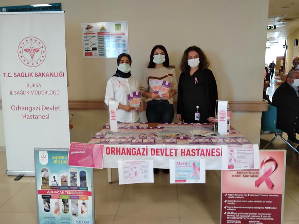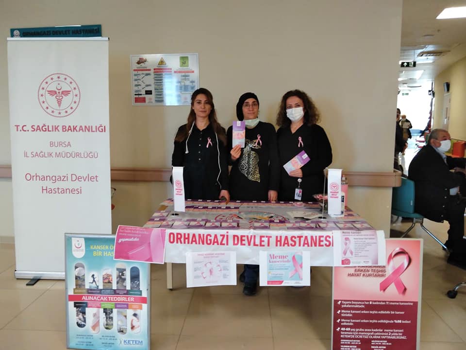 Orhangazi Devlet Hastanesi’nde meme kanserinde erken tanının önemine dikkat çekmek ve farkındalık yaratmak için stand kuruldu.